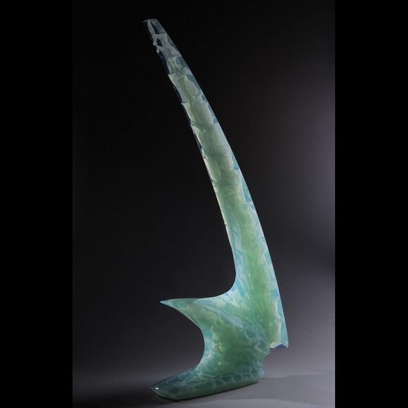 Tavená skleněná plastika Transformation, 2014. Autor plastiky: Peter Bremers 🡥. Umístění: USA.